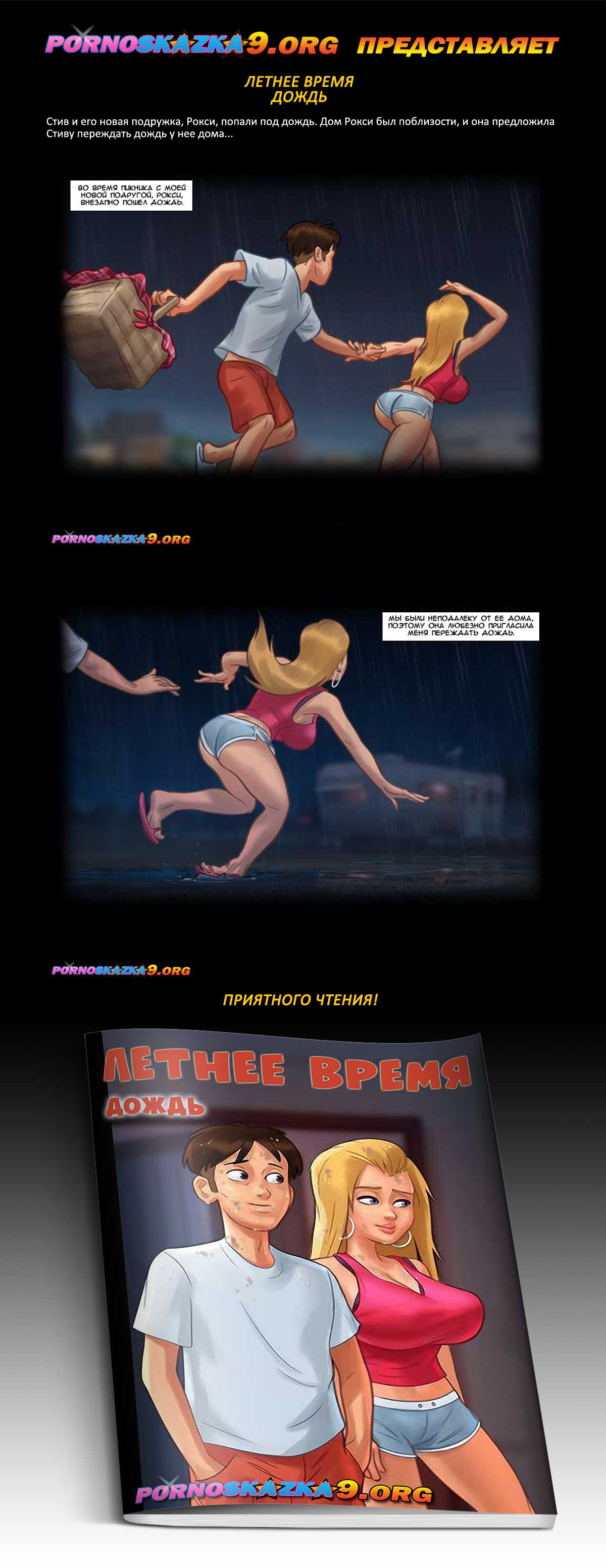 Порно комикс «Летнее время. Дождь.» Стив и его новая подружка, Рокси, попали под дождь. Дом Рокси был поблизости, и она предложила Стиву переждать дождь у нее дома…